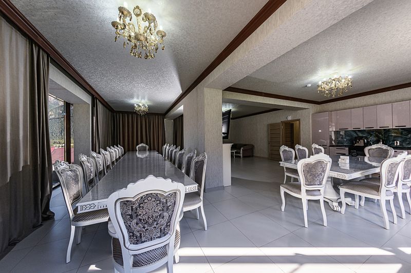 Банкетный зал входит в стоимость тарифа №3 «Люкс апартаменты» и тарифа №4 «Вилла целиком».