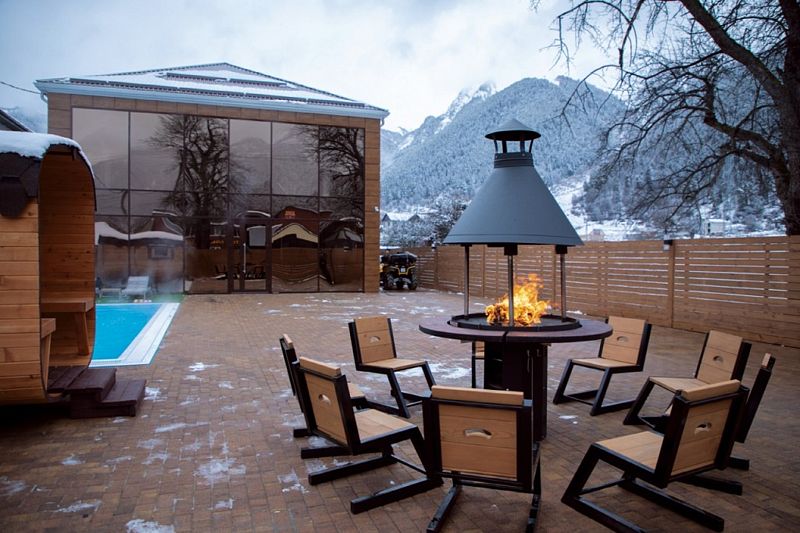 В вашем распоряжении горячий бассейн, баня и зона для посиделок у костра. Ряд услуг входят в стоимость определённого варианта проживания.