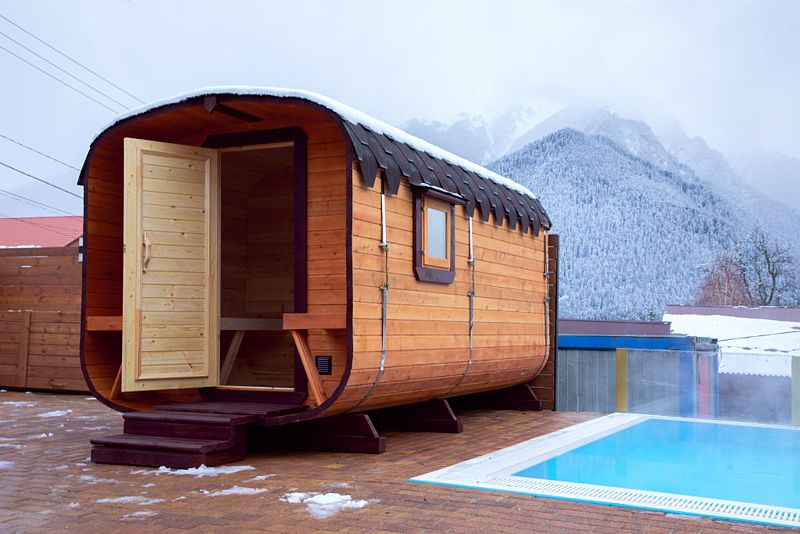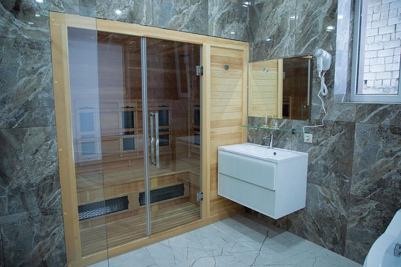 Сауна входит в стоимость тарифа №2 «Стандарт вилл 1 этаж», тарифа №3 «Люкс апартаменты» и тарифа №4 «Вилла целиком».