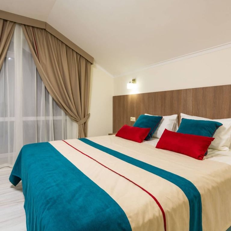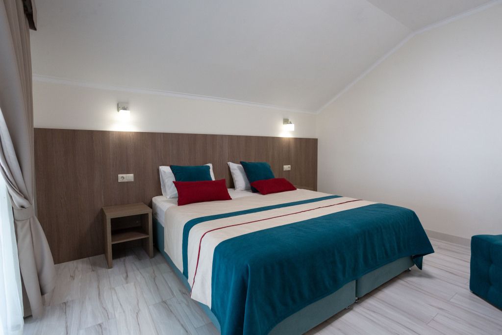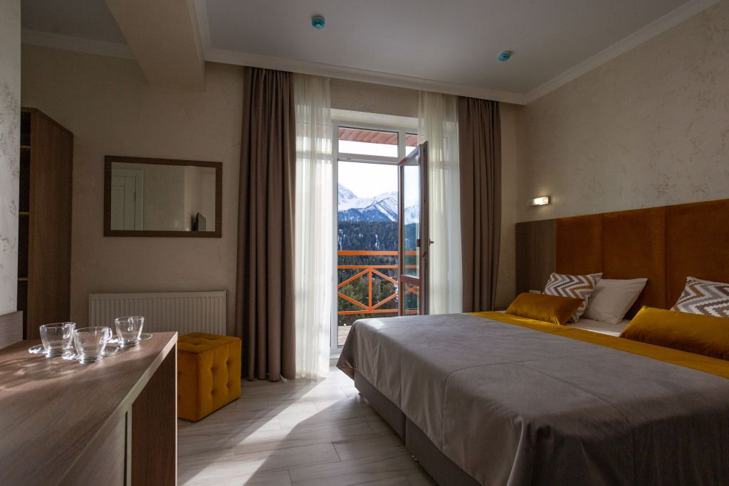 Семейный отдыхДостоинстваОтель порадовал чистотой, уютом и спокойной атмосферой. Хоть на территории и нет своего кафе, рядом можно найти места для трапезы. Великолепный вид на горы стал приятным бонусом. Администратор гостиницы - очень доброжелательная женщина, любезно ответила на наши многочисленные вопросы. Обязательно вернемся снова.