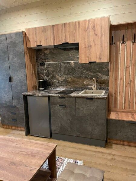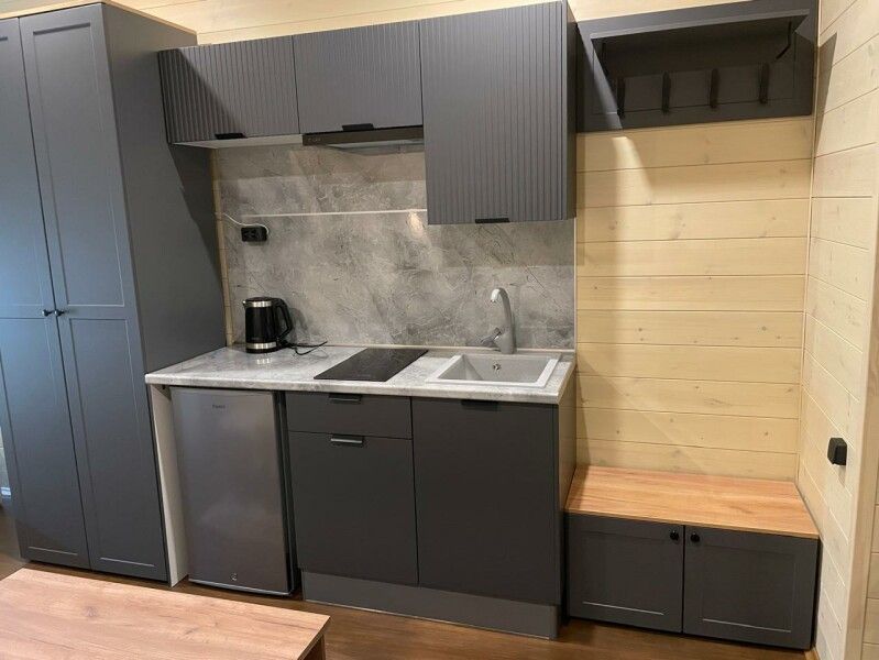 Двухкомнатный домик с отдельной спальней и кухней-гостиной.