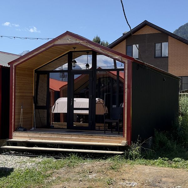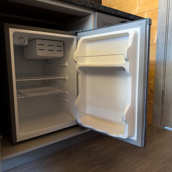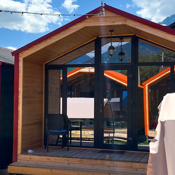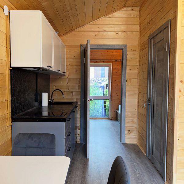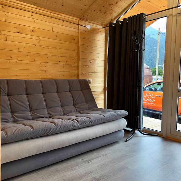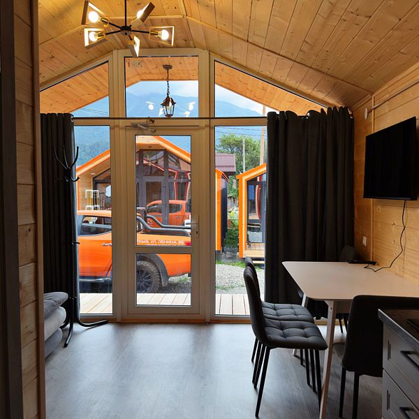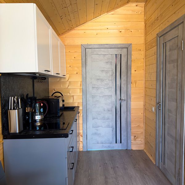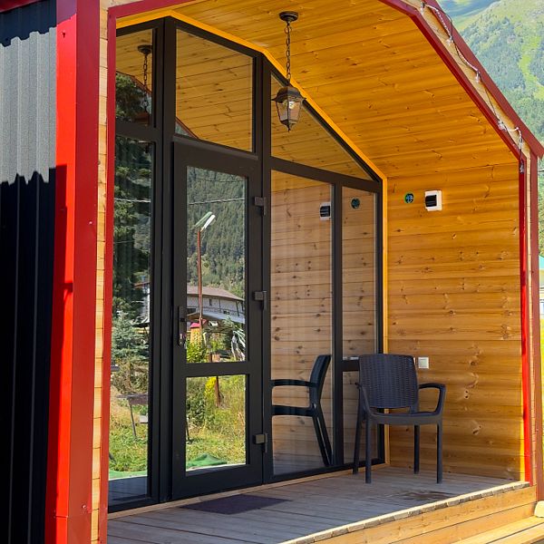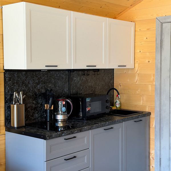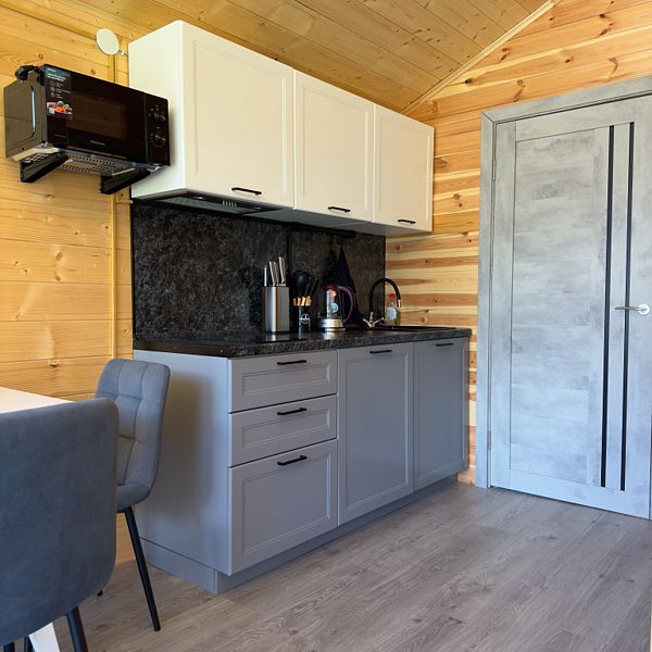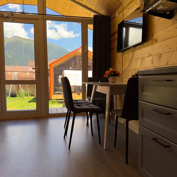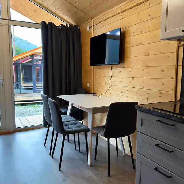 Каждый домик оснащен собственной мини-кухней со всем необходимым — индукционной плитой, микроволновой печью, чайником, полным набором посуды и современным холодильником. Это значит, что вы в любое время сможете приготовить любимые блюда или согреться горячим чаем, даже находясь в горах вдали от дома.