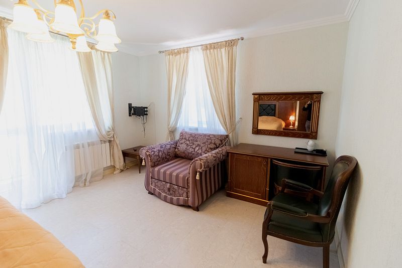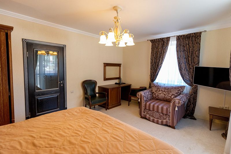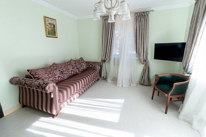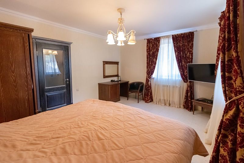 В каждом номере установлена удобная мебель, телевизор со Smart TV, а также работает Wi-Fi.