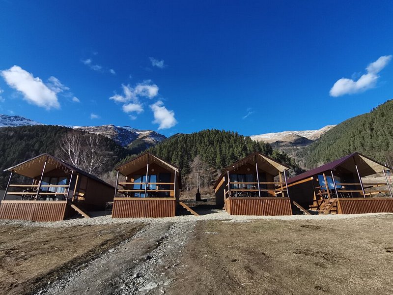 Комплекс «Arkhyz Family Lodge» предлагает уютные лоджи с панорамным видом на лес и горы всего в километре от центра.