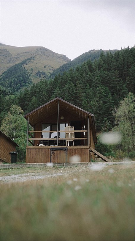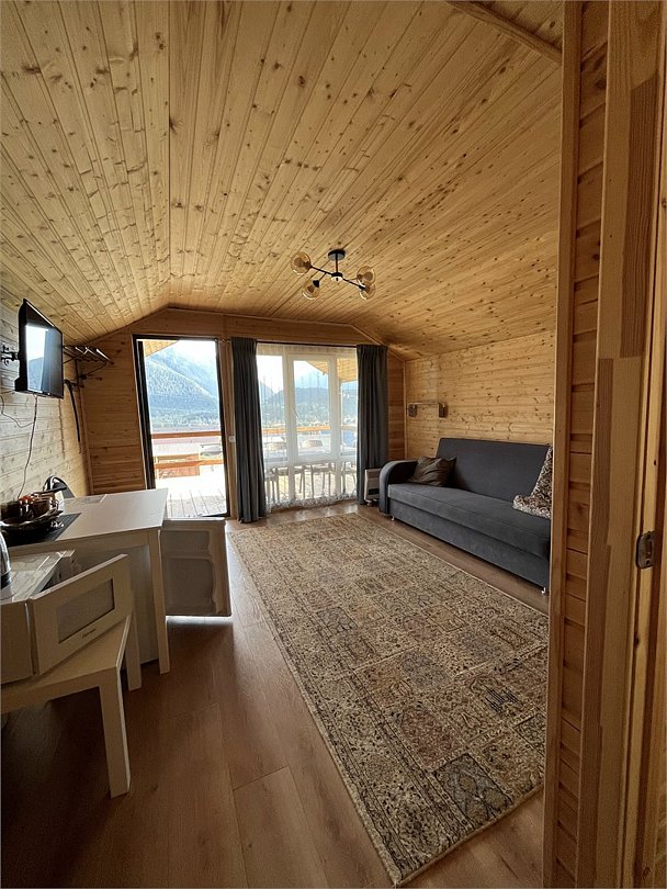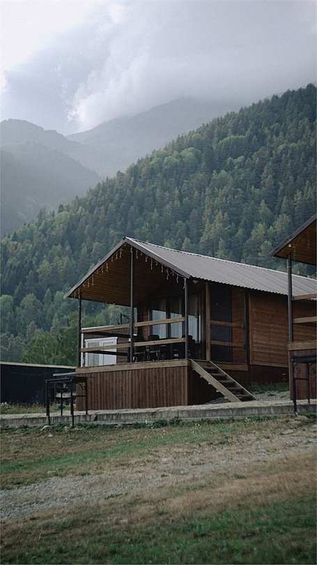 Лодж с собственной верандой и красивым видом на горы.Услуги и удобства