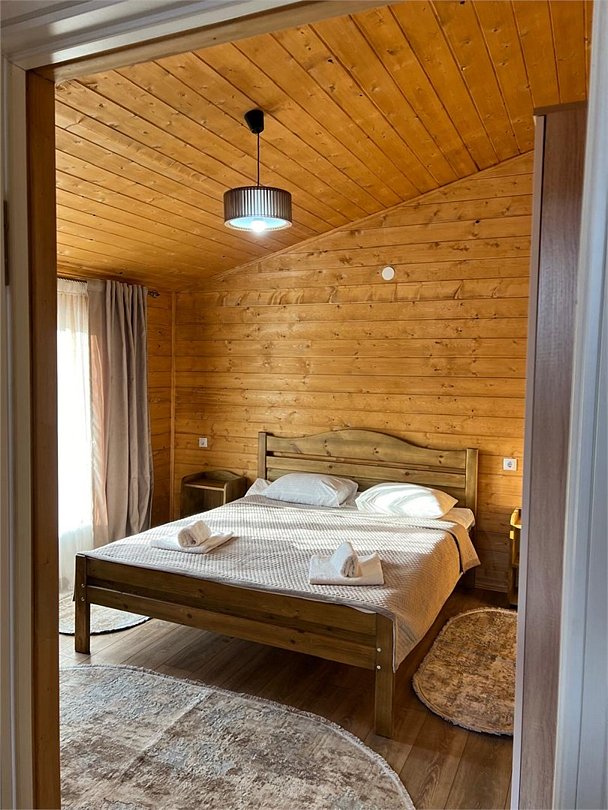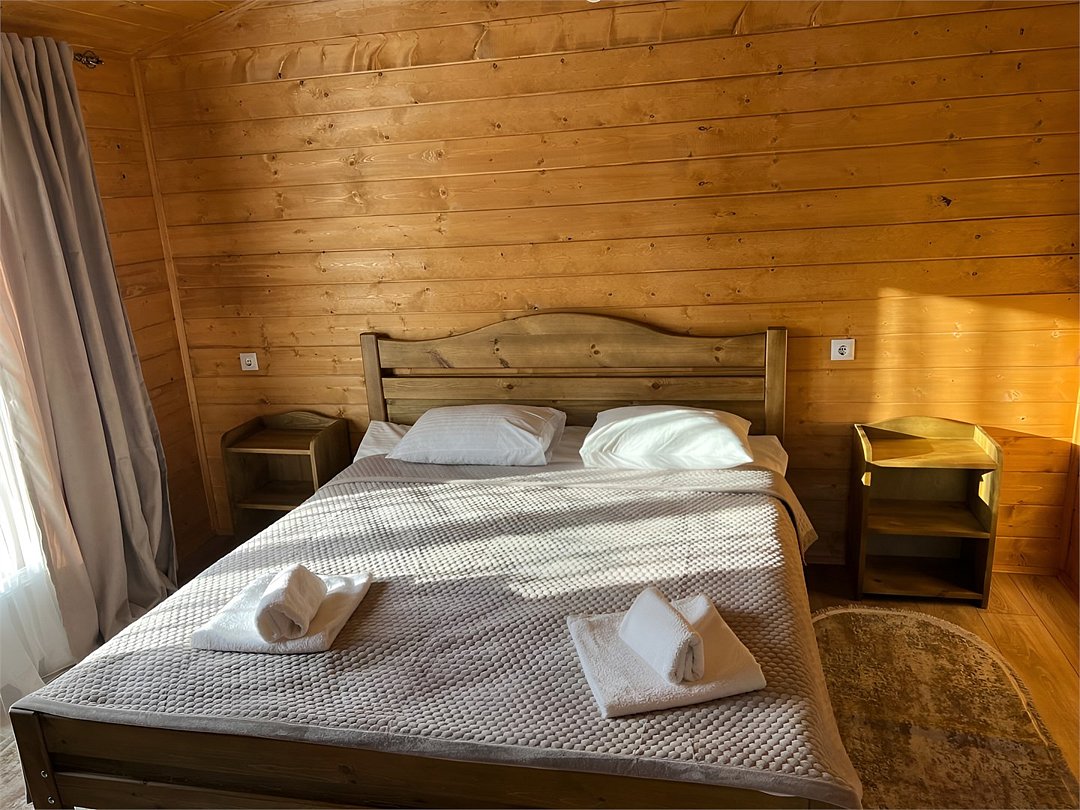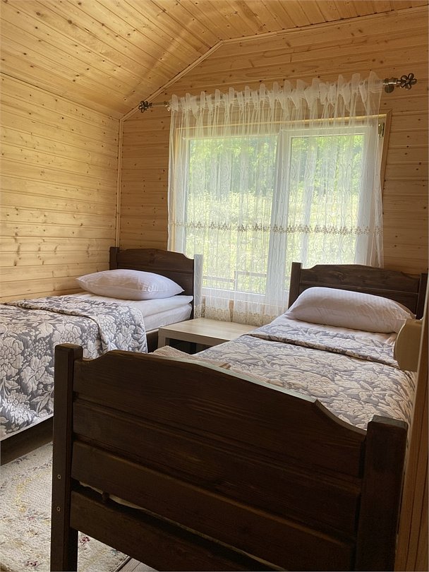 телевизор, холодильник, фен, обогреватель, душевая кабина, санузел, водонагреватель, банные полотенца, тапочки, гигиенические средства, терраса, две односпальные кровати, стулья, шкаф для одежды, обеденный стол, зеркало, ковер, две комнаты, звуконепроницаемые стены и окна, чайный набор, набор посуды, чайник, унитаз, раковина, питьевая вода, отопление, отдельный вход в номер, душ, вид во двор, стаканы, кухонная утварь, столовые приборы, стул, стол, туалетные средства, туалет, мангал, цифровое тв, телевизор с плоским экраном, мини-холодильник, москитная сетка, вид на горы, вид на лесВ коттедже