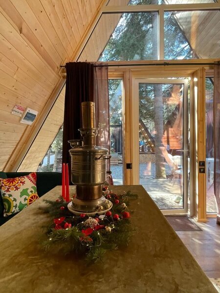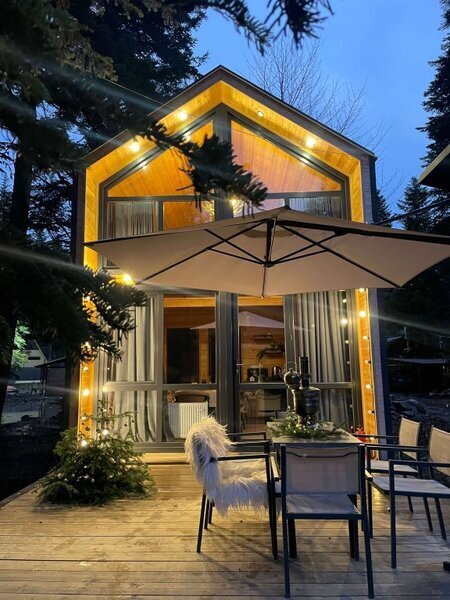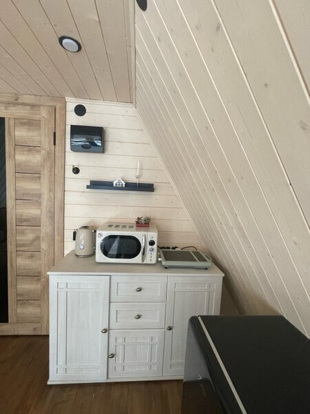 Комфортабельные домики оснащены всем необходимым для вашего беззаботного отдыха: телевизор, холодильник, микроволновка, индукционная плита, чайник, посуда и фен.