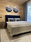Большая спальня на втором этаже с двуспальной кроватью и диванчиком.