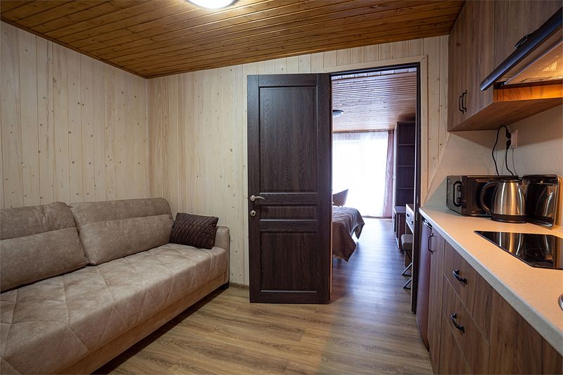 2х комнатные апартаменты Делюкс с балконом и красивым видом на горы. Номер оснащен кухонной зоной, где имеется электроплита, холодильник, микроволновая печь, чайник и вся необходимая посуда. Гостям предоставляются также беседки с зоной мангала.