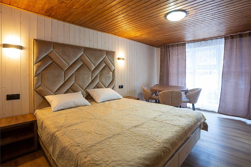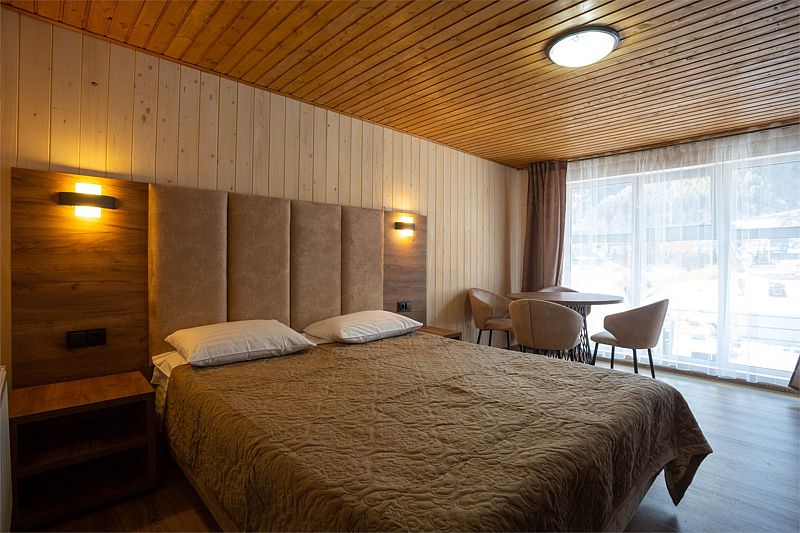 После активного дня в горах можно отдохнуть на кроватях с ортопедическими матрасами в спальнях. С балконов и террас открываются панорамные виды на горы, позволяя запечатлеть живописные моменты.