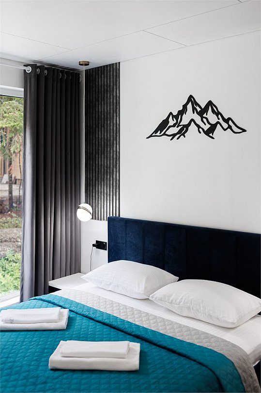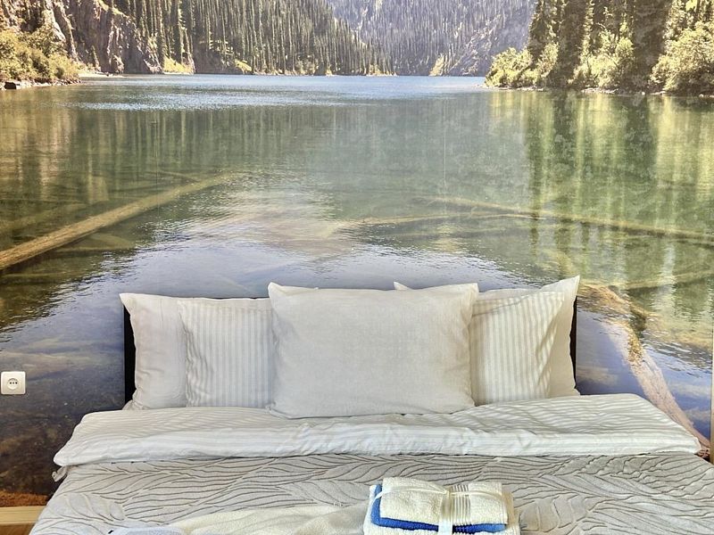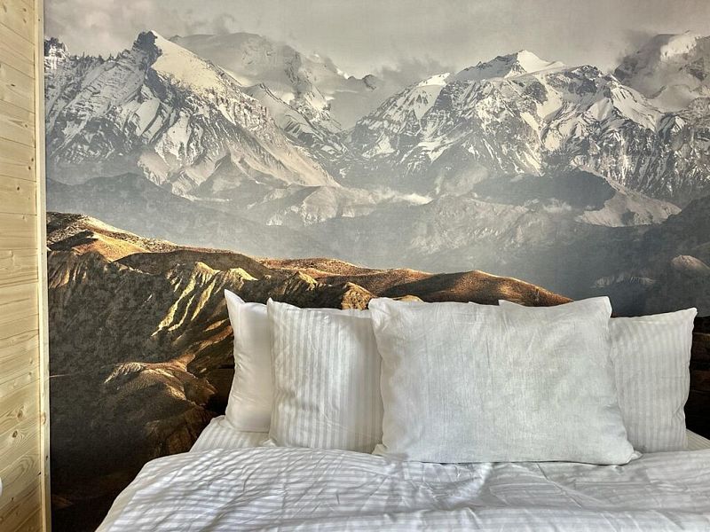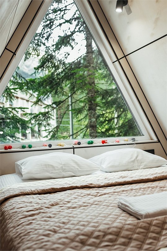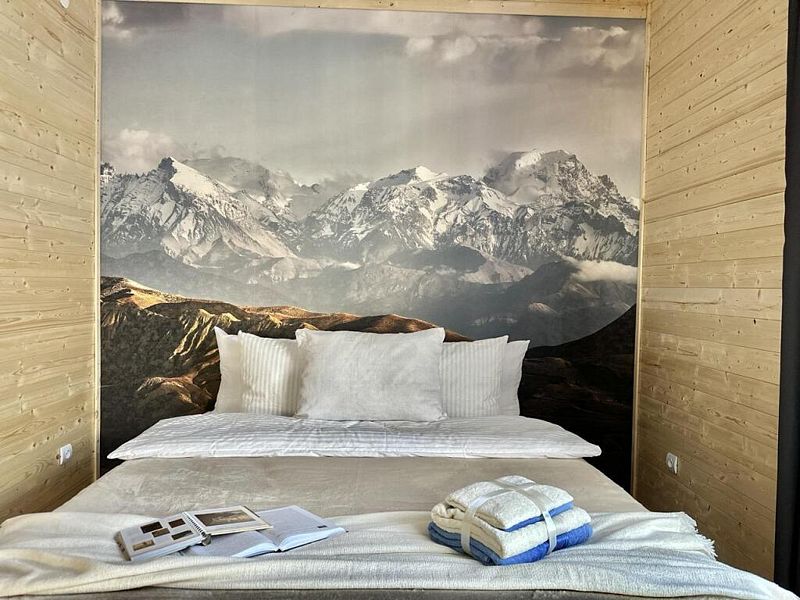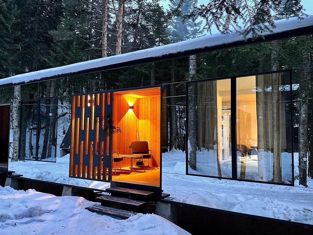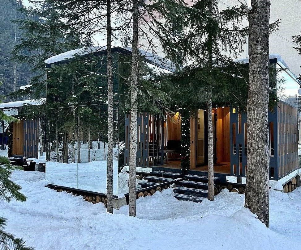 В сердце Домбая, среди величественных пихт и горных вершин, расположен зеркальный таунхаус для четверых. Его фасады отражают лес и небо, сливаясь с природой и создавая ощущение абсолютной гармонии. Дом стоит прямо на берегу горной реки - у вас будет собственный выход к воде и просторная веранда, парящая над её шумным течением. Это самое уединённое место базы, где никто не нарушит ваш покой. Здесь можно насладиться утренней чашечкой кофе, слушая журчание реки, или вечерним бокалом вина, ощущая, как горы и лес возвращают силы. Такой отдых невозможно забыть - он станет вашим личным пространством свободы и вдохновения. В таунхаусе уютная спальня с двуспальной кроватью, и просторная кухня-гостиная с панорамными окнами, выходящими на горную речку и лес. Таун отлично подойдет для проживания вдвоем или семьи с детьми . Внутри есть всё необходимое для комфортного отдыха, продуманное до мелочей.Услуги и удобства