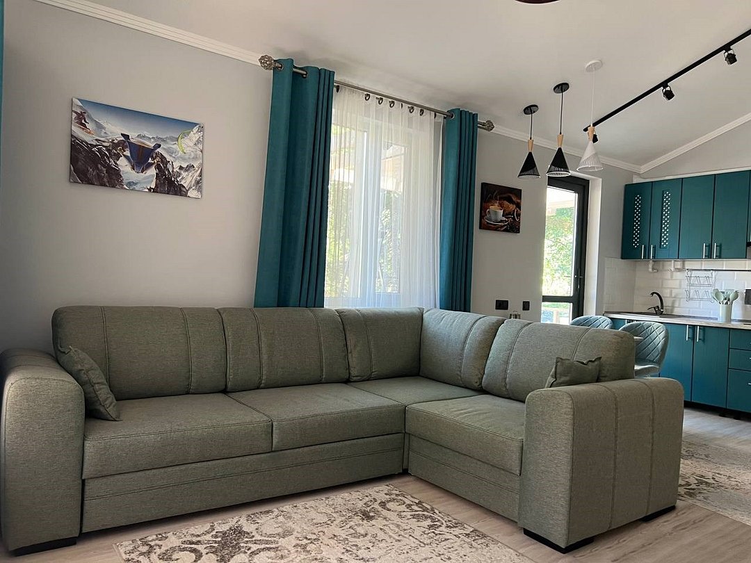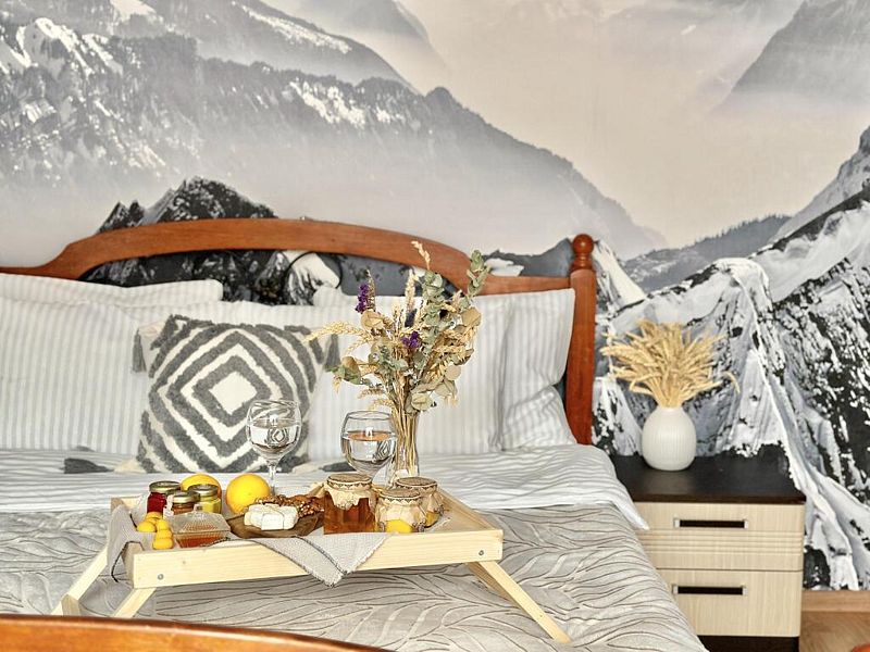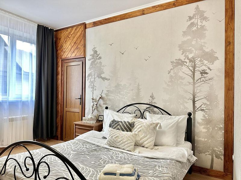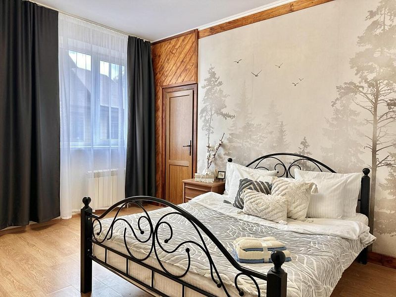 Этот коттедж в скандинавском стиле - не просто место для отдыха, а пространство для тех, кто ценит комфорт премиум-класса в гармонии с природой. Элегантный дизайн, панорамные окна и просторная терраса создают атмосферу современного шика среди пихтового леса. Здесь вы обретаете не только уединение, но и особый статус — отдых в этом доме подчеркивает ваш вкус и выбор в пользу эксклюзивного, стильного и по-настоящему роскошного проживания в Домбае. В доме две уютные спальни и просторная кухня-гостиная с большим удобным диваном. Домик отлично подойдет для семьи с детьми или компании друзей. Внутри есть всё необходимое для комфортного отдыха, продуманное до мелочей.Услуги и удобства