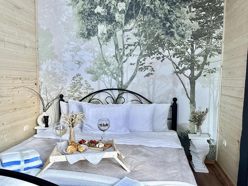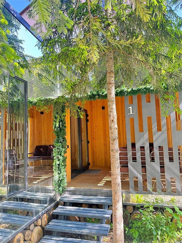 Уютный зеркальный таунхаус в пихтовом лесу. Идеально подойдёт для компании до четырёх человек - в доме предусмотрена отдельная спальня с двуспальной кроватью и гостиная-кухня с удобным раскладным диваном. Пространство оборудовано всем необходимым для вашего проживания: кухня с посудой, ванная комната, обеденная зона и уютное место для отдыха. Вокруг - живописный лес, тишина и просторная территория базы, где можно по-настоящему расслабиться и почувствовать гармонию с природой.Услуги и удобства