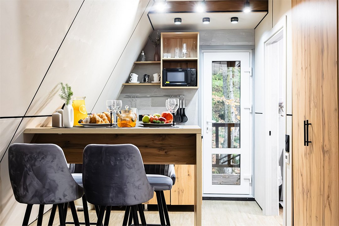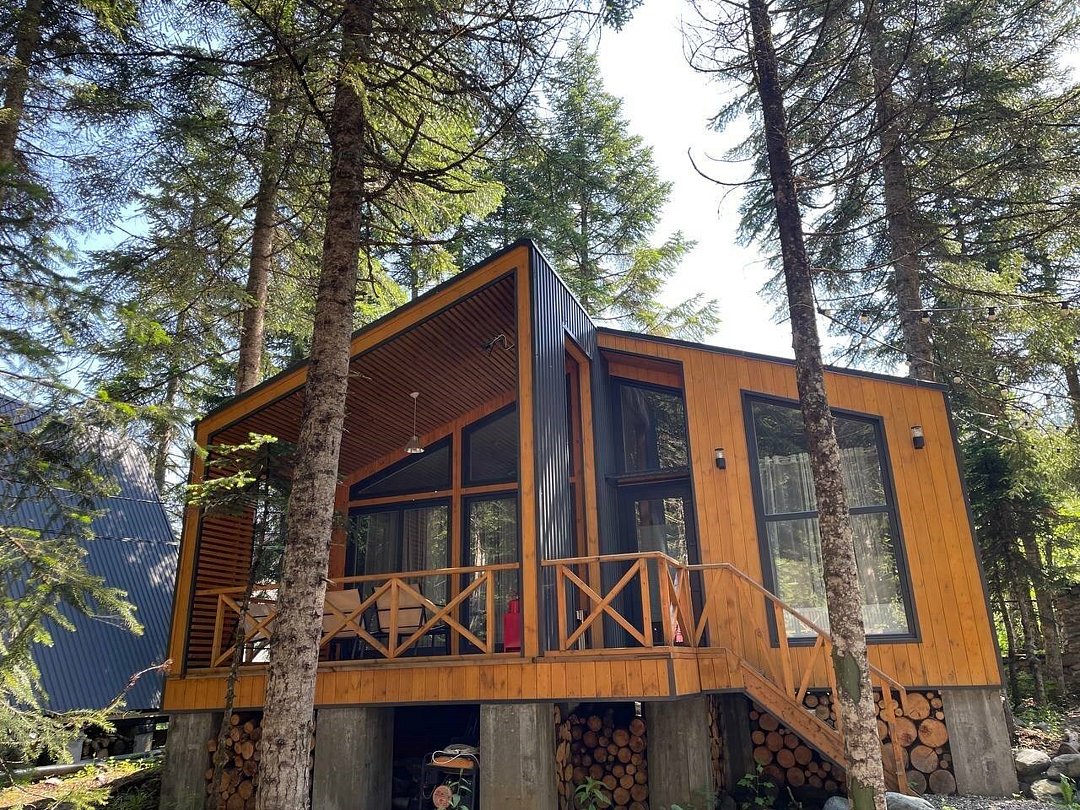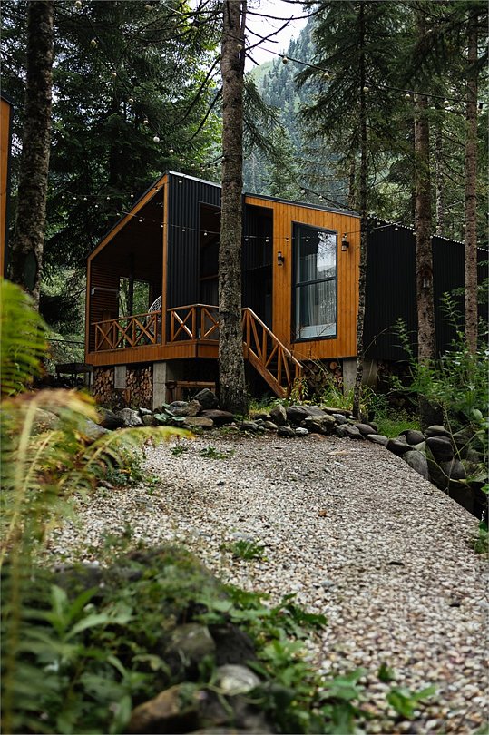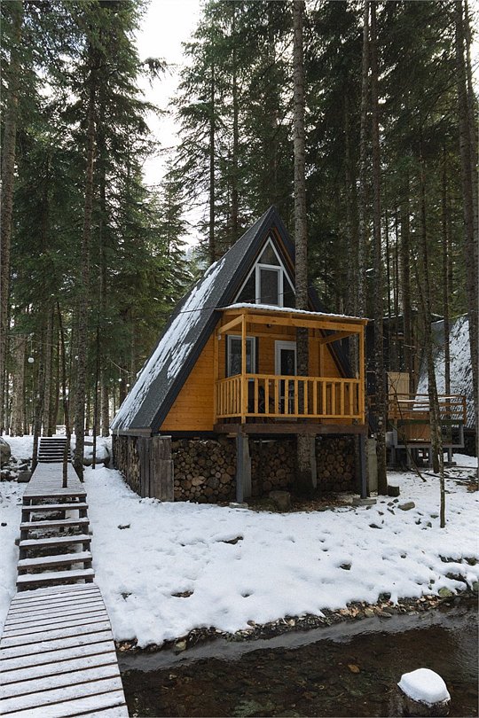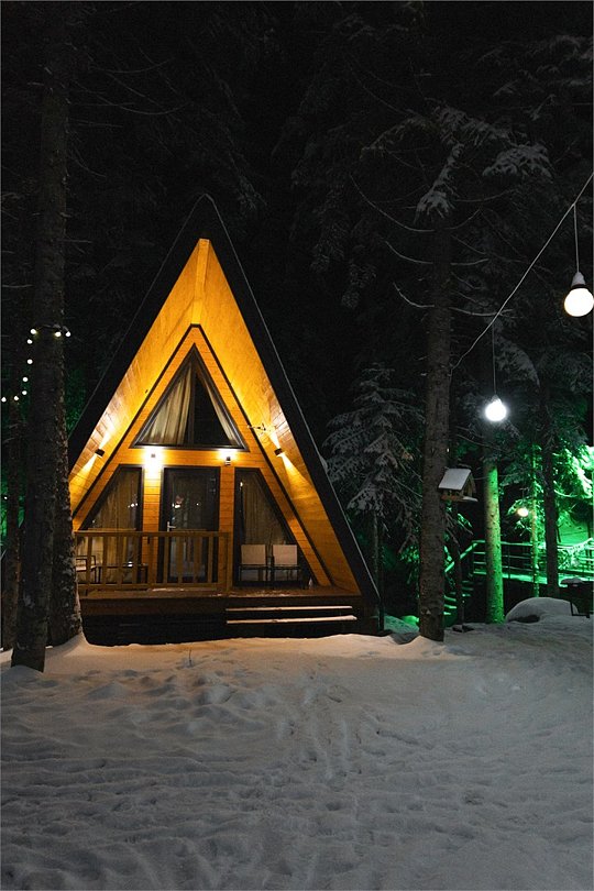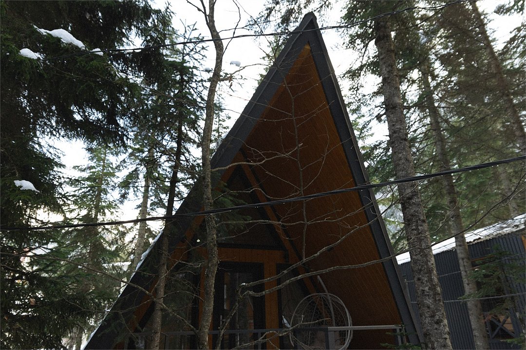 Уютный А-фрейм домик расположен в глубине леса, благодаря чему здесь царит настоящая тишина. Окружённый вековыми деревьями, он идеально подойдёт для тех, кто ищет уединения, покоя и перезагрузки на природе. Только вы, лес, чистый горный воздух и абсолютное спокойствие -идеальное место для отдыха вдали от шума и суеты. На первом этаже расположена комфортная кухня-гостиная с большим удобным диваном, на втором - уютная спальня с двуспальной кроватью. Домик отлично подойдет для семьи с детьми или компании друзей. Внутри есть всё необходимое для комфортного отдыха, продуманное до мелочей.Услуги и удобства