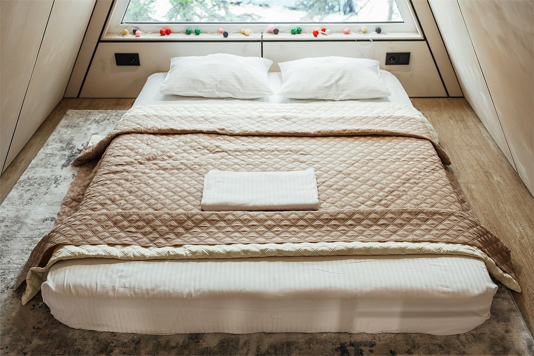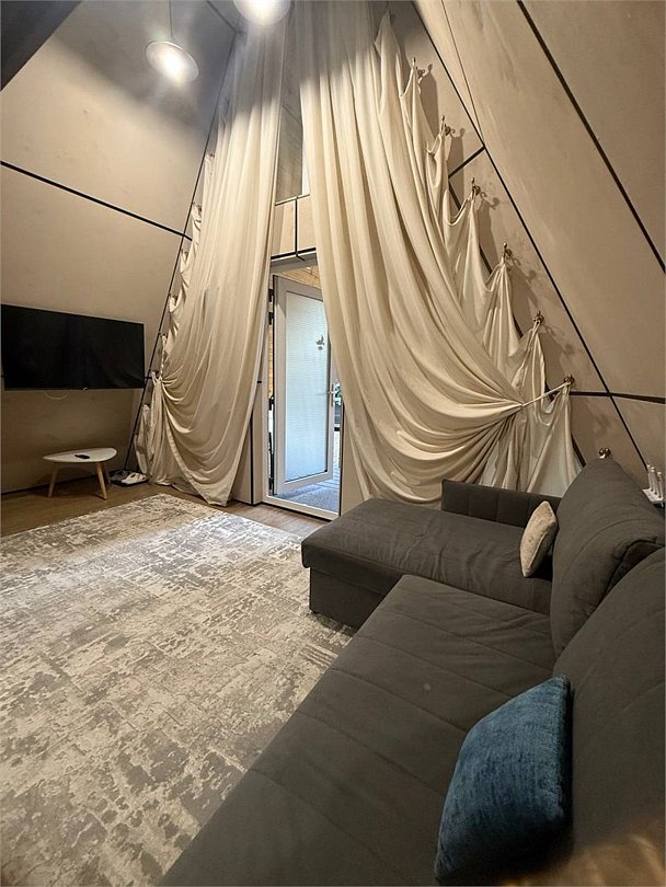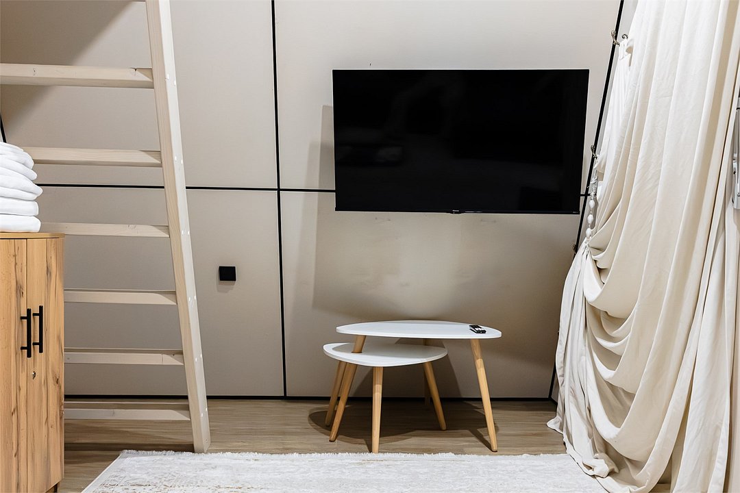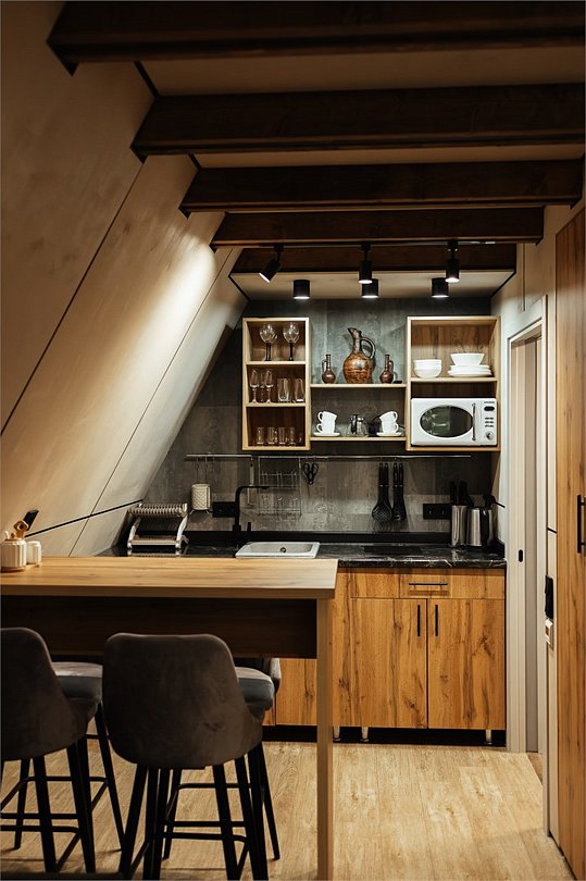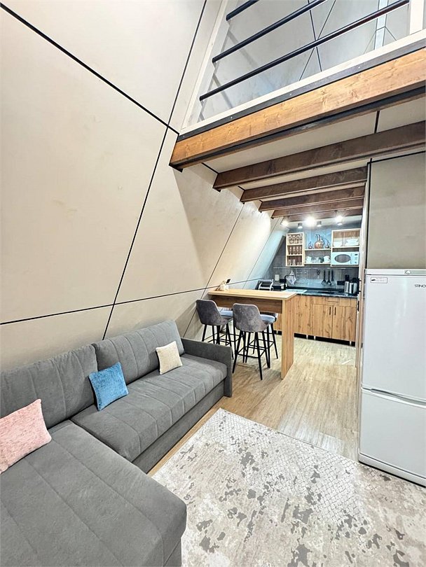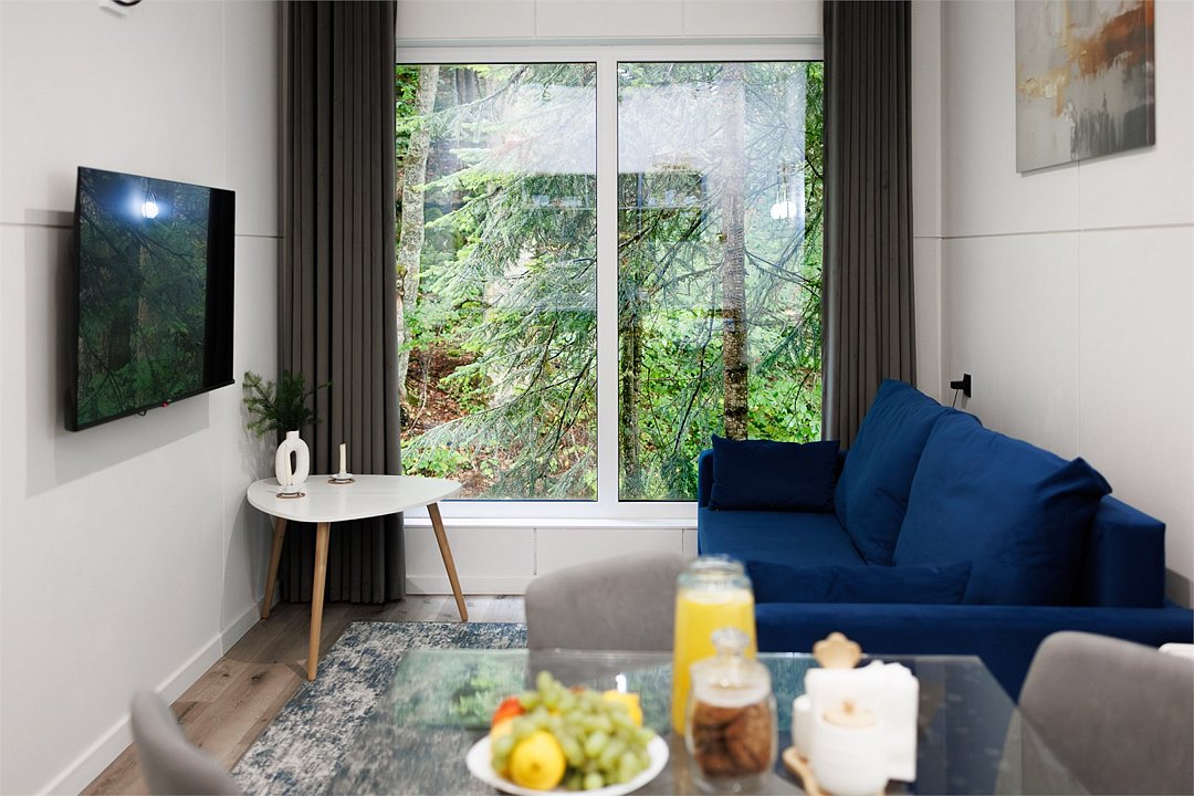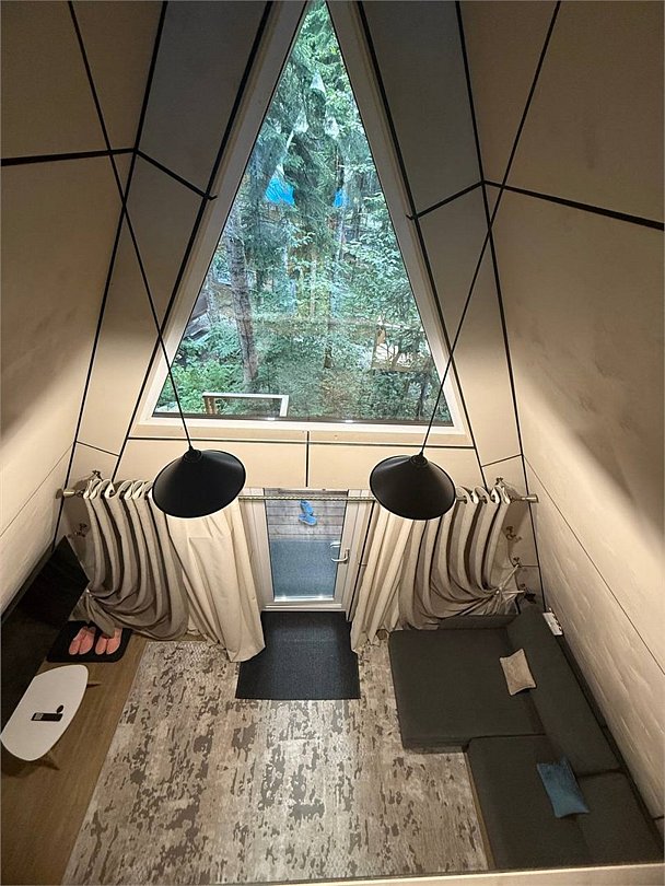 Уютный А-фрейм домик расположен в глубине леса, благодаря чему здесь царит настоящая тишина. Окружённый вековыми деревьями, он идеально подойдёт для тех, кто ищет уединения, покоя и перезагрузки на природе. Только вы, лес, чистый горный воздух и абсолютное спокойствие -идеальное место для отдыха вдали от шума и суеты. На первом этаже расположена комфортная кухня-гостиная с большим удобным диваном, на втором - уютная спальня с двуспальной кроватью. Домик отлично подойдет для семьи с детьми или компании друзей. Внутри есть всё необходимое для комфортного отдыха, продуманное до мелочей.Услуги и удобства