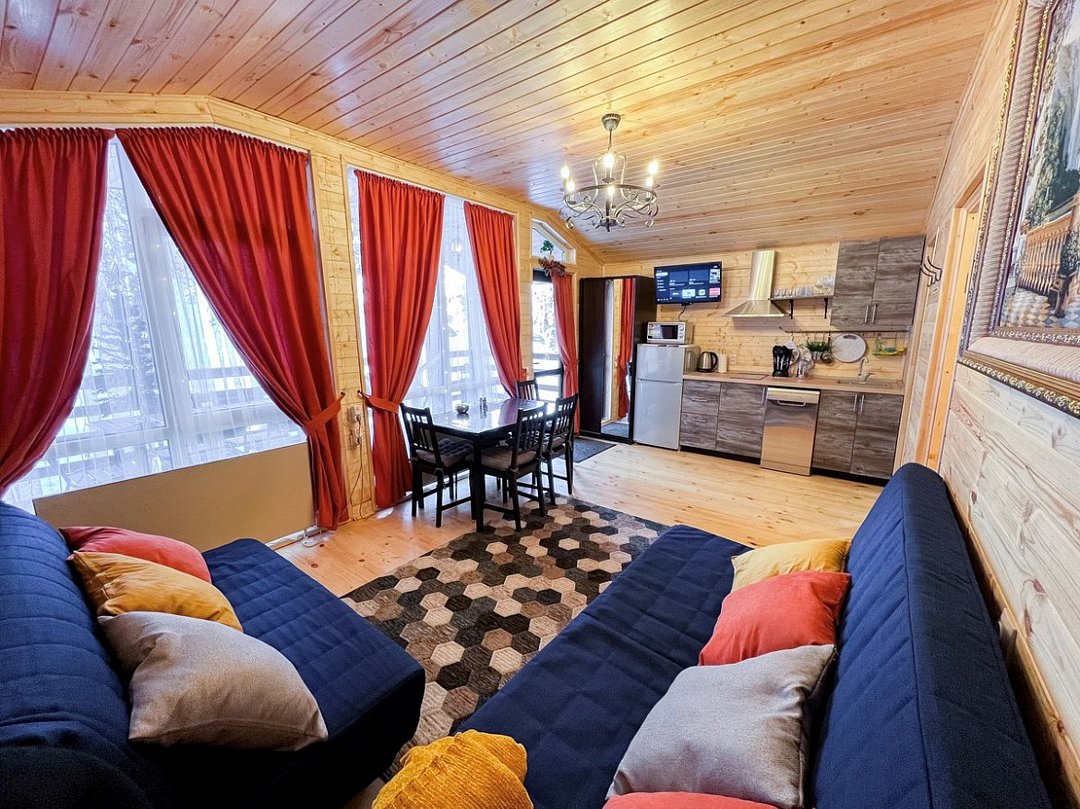 Скандинавские шале в самом сердце кавказских гор . Оборудованы всем необходимым для комфортного проживания. У нас тепло, чисто, уютно и красиво. К нам нельзя с животными.Услуги и удобства
