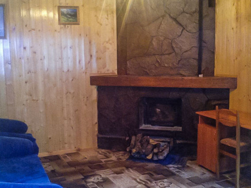 Номер оснащен: диван, два кресла, шкаф, телевизор, тумба, камин. Санузел: раковина, унитаз, душ.