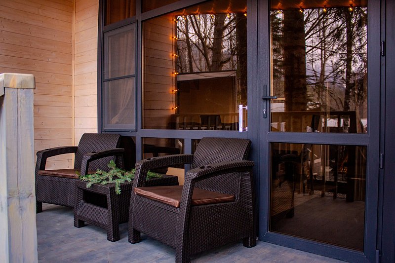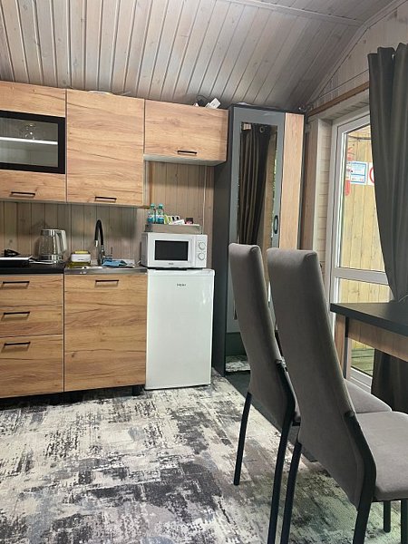 В каждом домике Вас ждет чистота, порядок и все необходимое для проживания. На территории комплекса располагаются большие беседки, детская площадка, качели и мангальная зона, так же Вы сможете прогуляться по хвойному лесу и насладиться ароматом и красотой величественных деревьев.