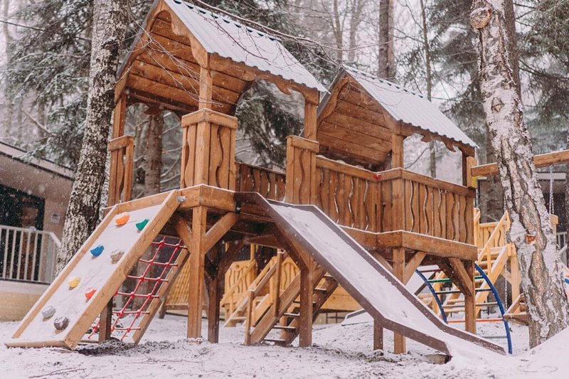 На территории комплекса есть детская площадка с качелями, созданная специально для маленьких гостей.