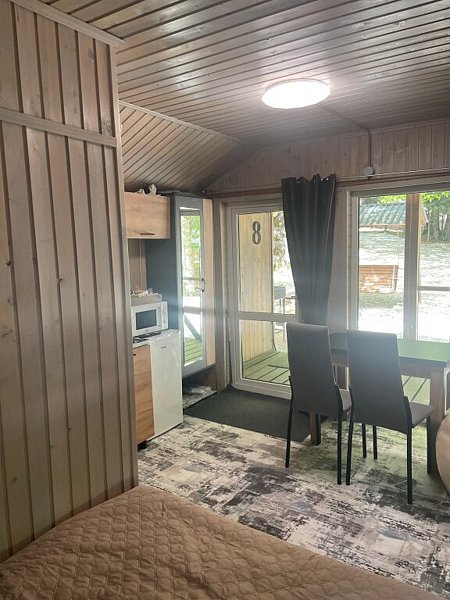 Уютный домик для двоих не ставит равнодушным никого. В домике имеется все необходимое для проживания а самое главное очень красивый вид из окна на хвойный лес .