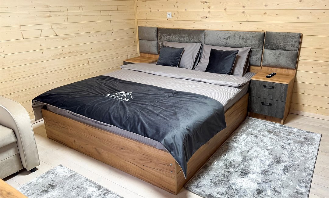 Гостям к размещению предлагаются семь уютных коттеджей по 35 м2, оснащенных двухместной кроватью, диваном который можно раскрыть, wi-fi, телевизор, а так же всем необходимым для Вашего комфортного проживания. В каждом домике имеется своя ванная комната с санузлом, душевой кабинкой, феном и туалетными принадлежностями.