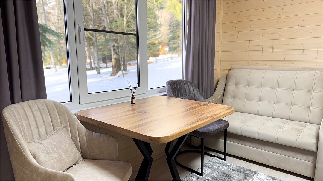 Wi-Fi, интернет, фен, плита для приготовления пищи, микроволновая печь, обогреватель, ванная комната, душевая кабина, санузел, водонагреватель, банные полотенца, тапочки, терраса, двуспальная кровать, стулья, шкаф для одежды, вешалки, обеденный стол, комод, вид во двор, туалетные средства, мини-холодильник, вид на горы, телевизор со Smart TV, вид на лес, пуфик, мыло, затемняющая штора, без питомцевВ бунгало