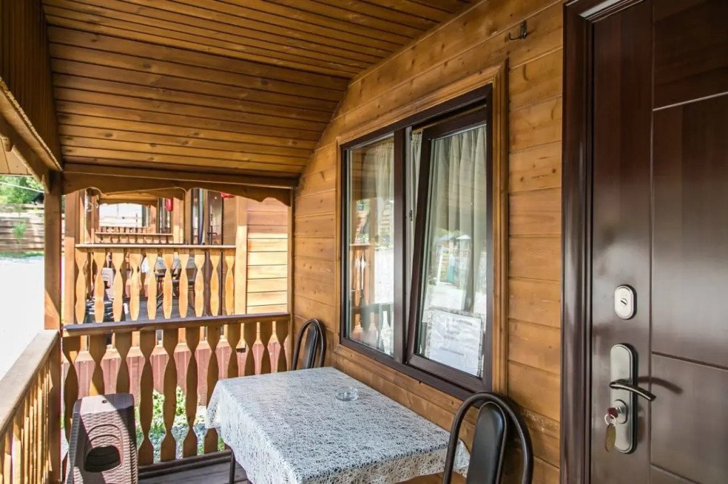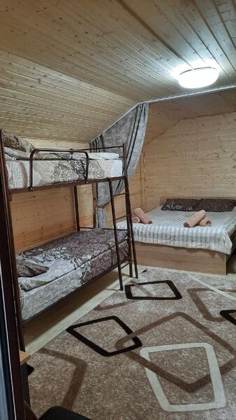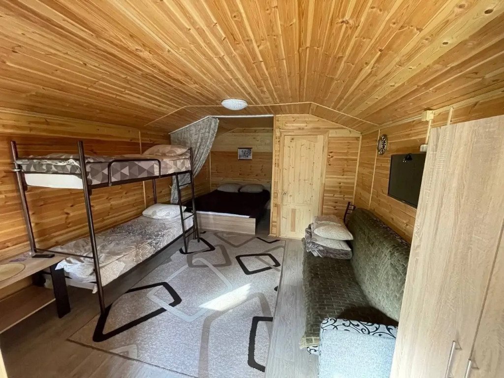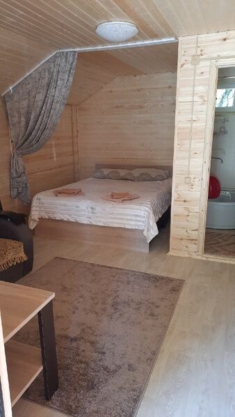 Деревянный однокомнатный домик, 25 кв.м., вмещает до 6 человек. Есть все необходимое для комфортного отдыха. Предоставляем постельное белье, полотенца, одноразовые принадлежности личной гигиены.