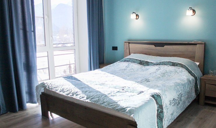 Отдохните в уютном гостевом доме «Бархат» в живописном Архызе! Расположенный в километре от центра, дом находится рядом с горнолыжным курортом, скалой Карча-Тюбе и Софийскими озерами.