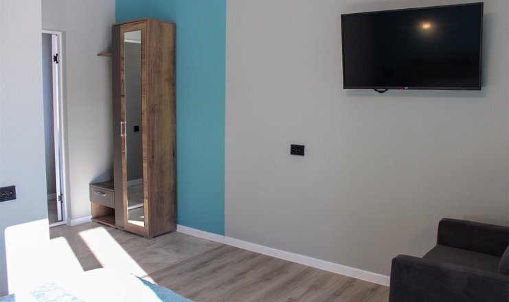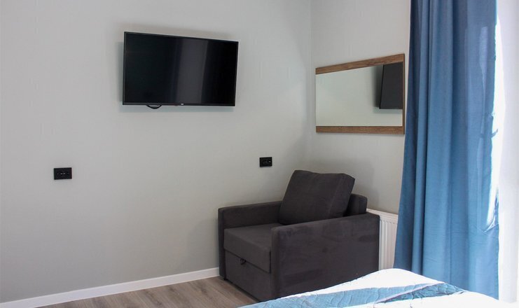 Данный номер оснащен двуспальной кроватью и кресло-кроватью для дополнительного размещения.