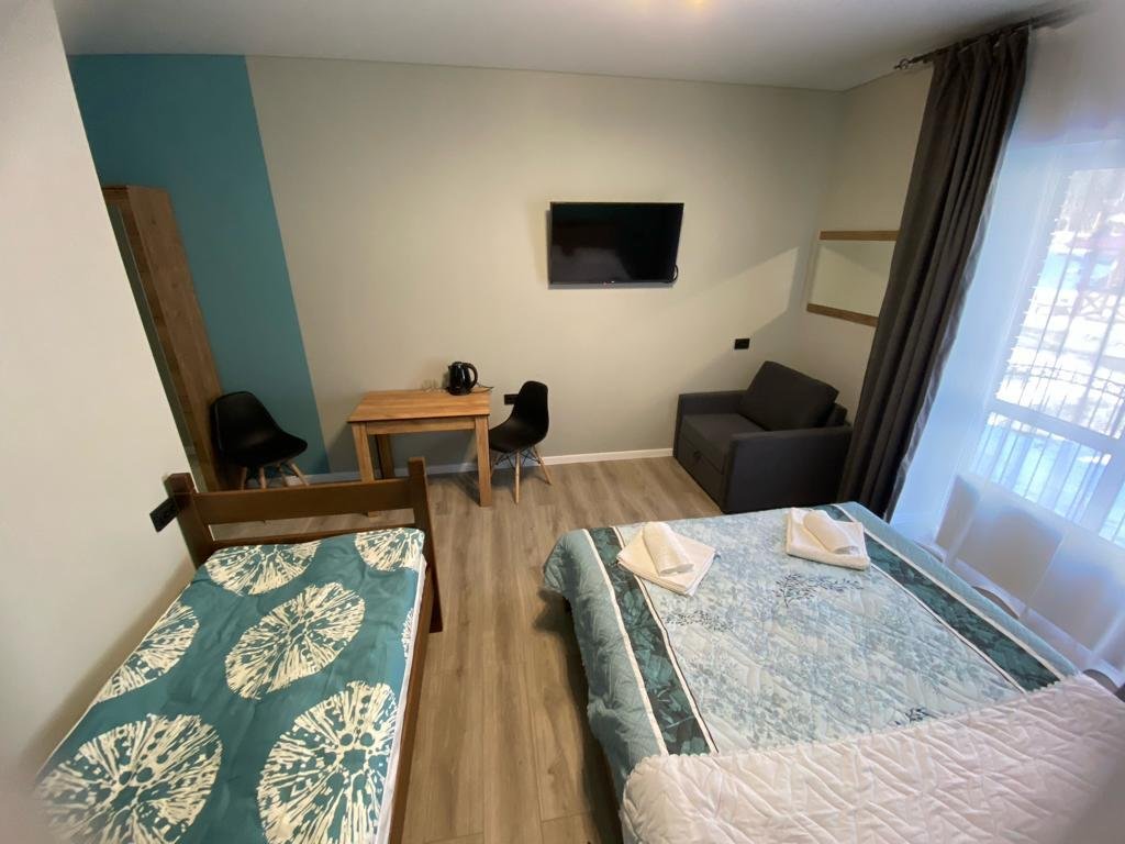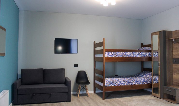 В номере имеется разнообразие спальных мест для комфортного отдыха: односпальная кровать, двуспальная кровать и двухъярусная кровать.