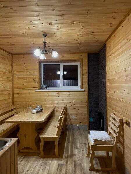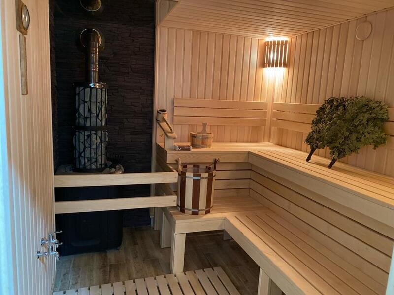 К вашим услугам общая кухня на цокольном этаже, оборудованная необходимой техникой, бесплатный Wi-Fi и парковка. Для комфортного отдыха: баня (за дополнительную плату), зона для пикника и барбекю. Также предлагаются трансфер, услуги прачечной и глажки.