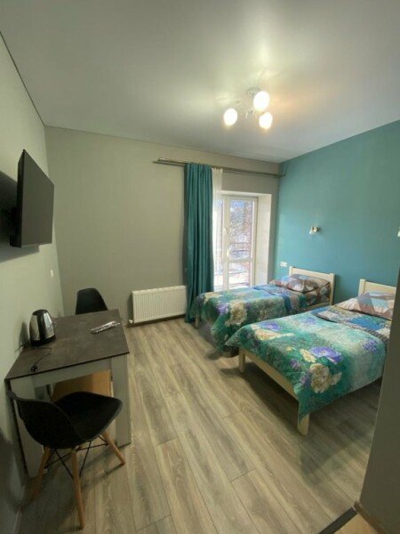 В номерах вы найдете все необходимое: полотенца, постельное белье, фен, телевизор, чайник, а также собственный санузел с душем.
