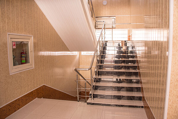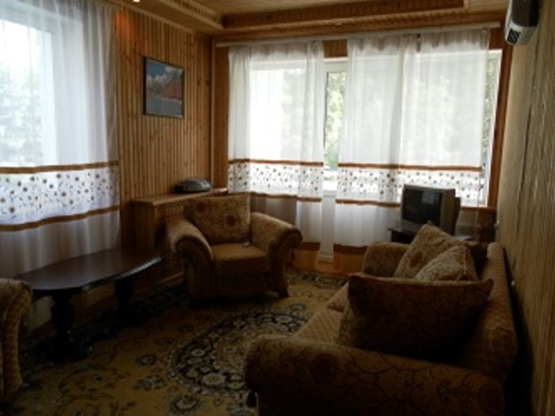 Четырехэтажное здание пансионата выстроено в традиционном для горнолыжных курортов альпийском стиле. Жилой фонд, рассчитанный на единовременное размещение 120 человек, предлагает гостям номера различных категорий — от Эконома с общим санузлом на этаже до двухкомнатного Люкса. Во всех номерах есть необходимая мебель и телевизор, номера повышенной комфортности оснащены дополнительной бытовой техникой.