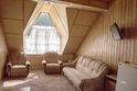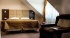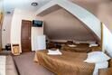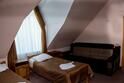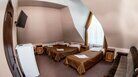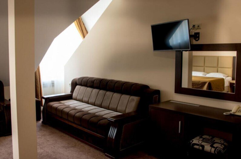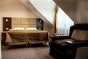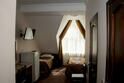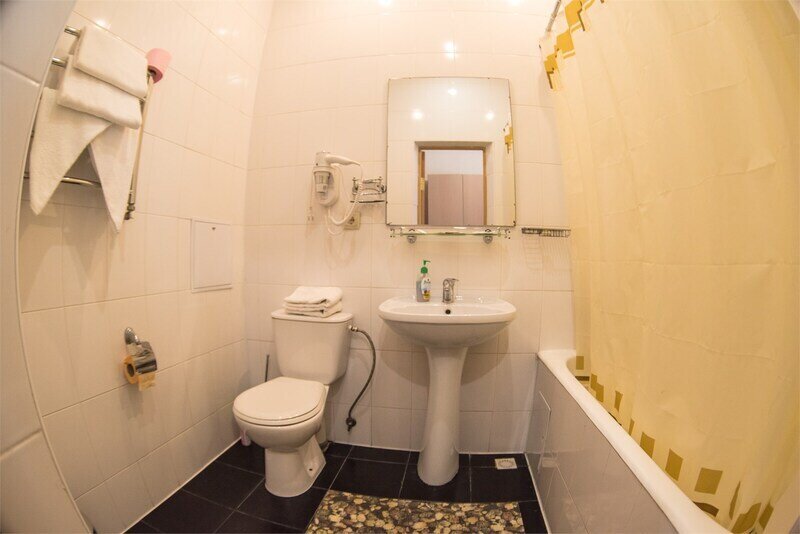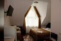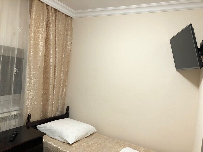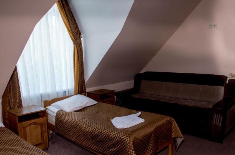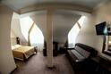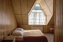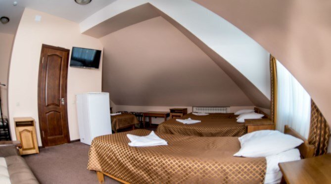 Номер расположен на 4 этаже. Этаж мансардный, балконы в номерах отсутствуют, потолки скошены.