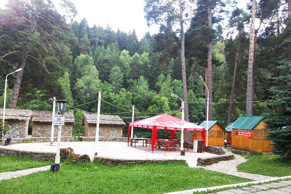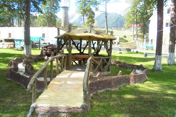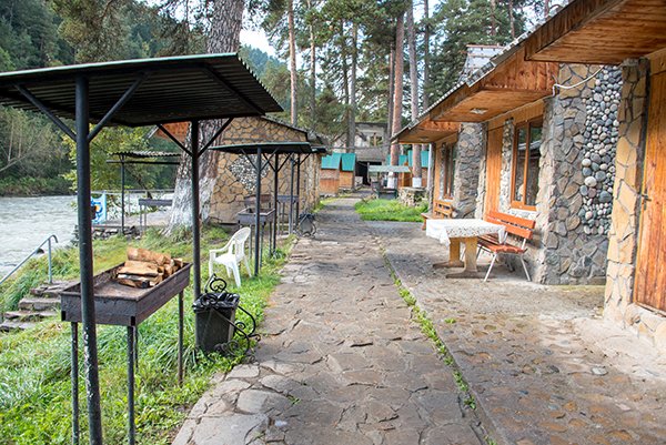 На территории пансионата обустроены специальные площадки — шашлычные домики и шалаши, оборудованные на берегу речки Большой Зеленчук. К каждому домику и шалашу подведено электричество. Внутри: стол, стулья, лавочки, рядом с каждым – мангал.