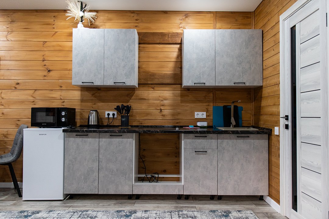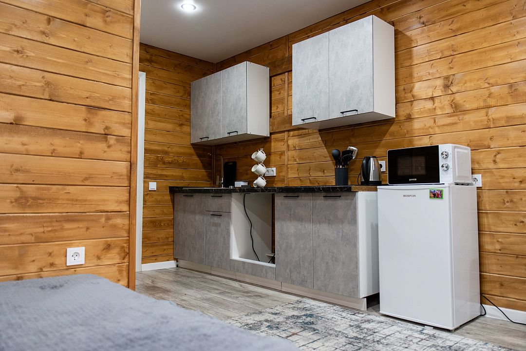 Здесь вы найдете все необходимое для комфортного проживания: бытовая техника (холодильник, плита, микроволновая печь, чайник, фен), чистое постельное белье, набор полотенец для каждого гостя, вся необходимая кухонная утварь, предметы личной гигиены.