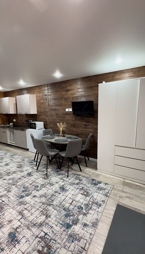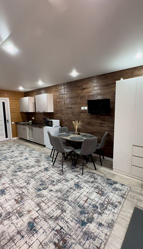 Новый уютный номер с террасой и всеми необходимыми удобствами: стильная кухня-гостиная, уютная спальня с красивым видом на горы, ванная комната со стиральной машинкой.