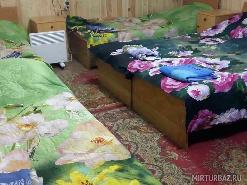 Номер со всеми удобствами. Он состоит из 4-х отдельных кроватей, столика, полочки, зеркала и вешалок для одежды. Проведено отопление. Сан.узел с соседним номером общий.