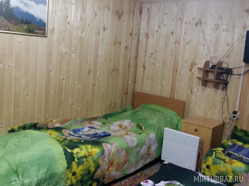 Номер со всеми удобствами. Представляет собой прихожую с сан.узлом и комнату с двуспальной кроватью, двух ярусной деревянной кроватью и отдельной кроватью, столом, тумбочкой, телевизором, зеркалом и вешалками для одежды. В номере проведено отопление.
