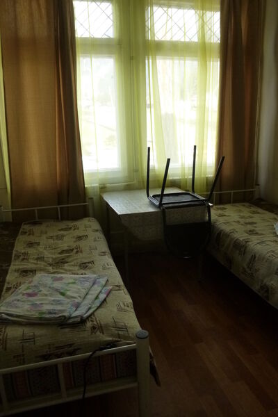 В номере: двуспальная кровать или две раздельные кровати, прикроватные тумбочки, шкаф для одежды, стол, стул, зеркало. Два санузла на 4 номера на этаже.