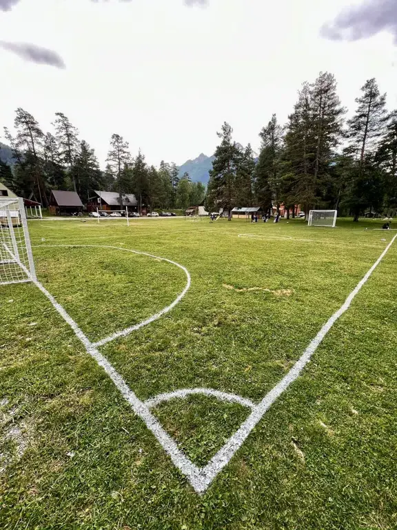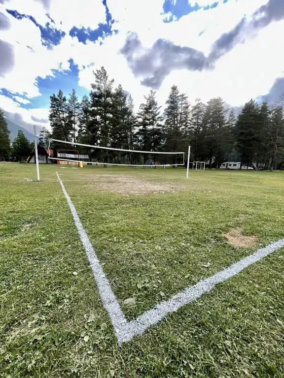 На территории базы есть поле для мини футбола и волейбольная площадка.