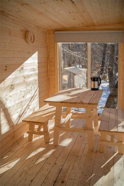 После путешествия и насыщенного дня Вы сможете отдохнуть в уютных домиках и расслабиться в бане или окунуться в банном чане.