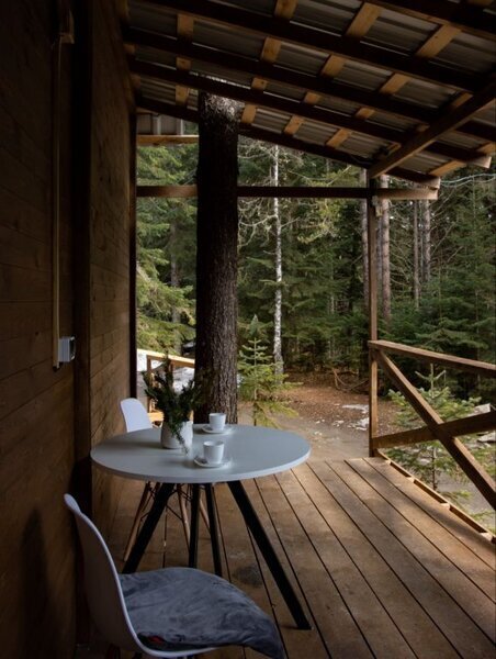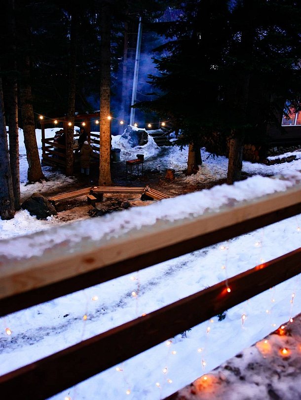 Терраса с видом на хвойный лес, собственная мангальная зона и кинотеатр под открытым небом — все это доступно гостям коттеджа.