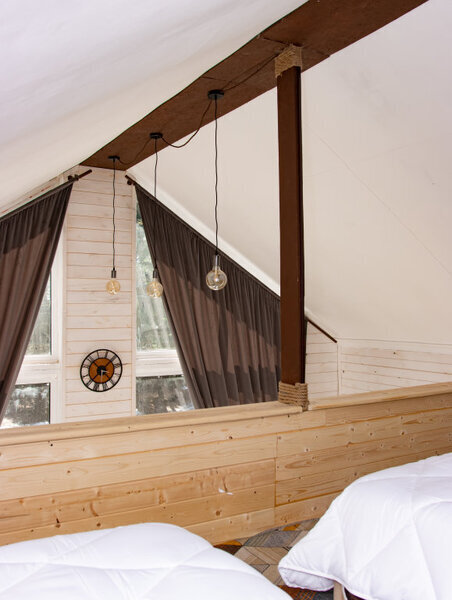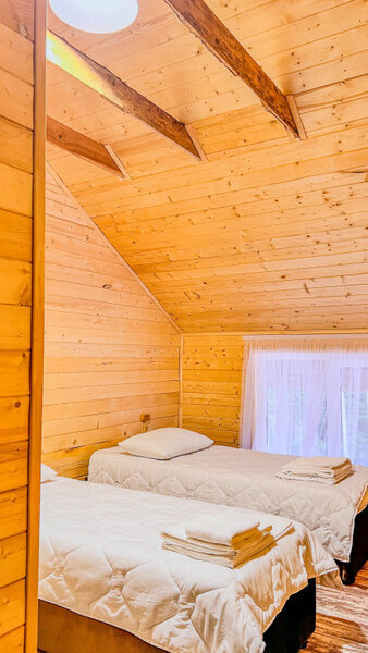 Две двуспальные кровати, одна диван-кроватьВ коттедже