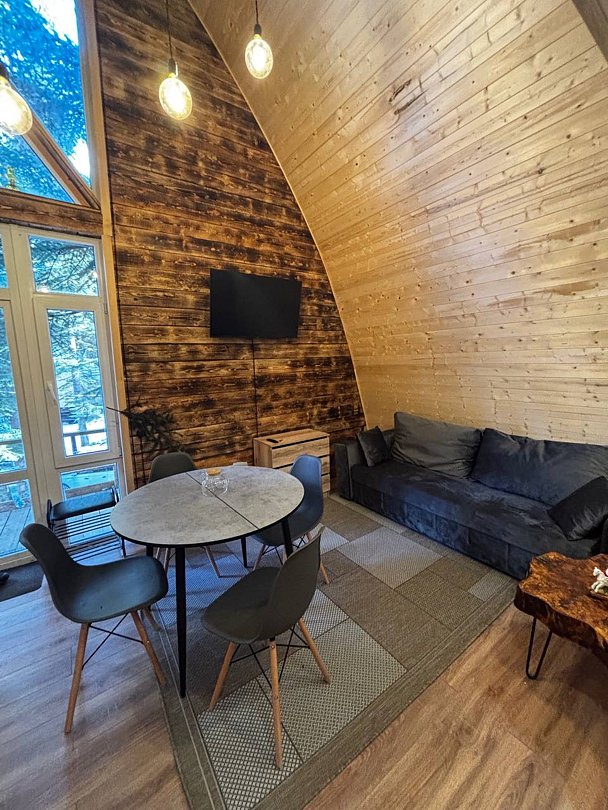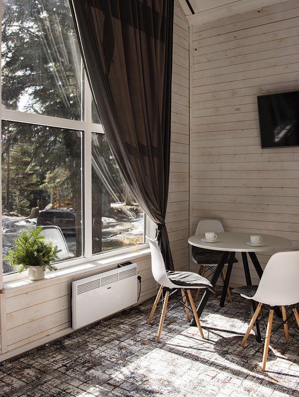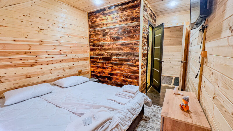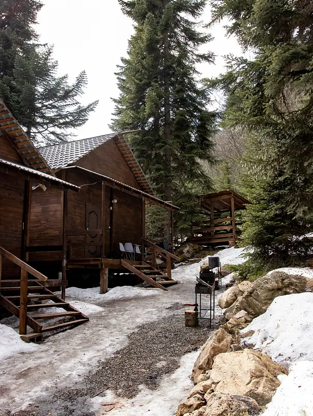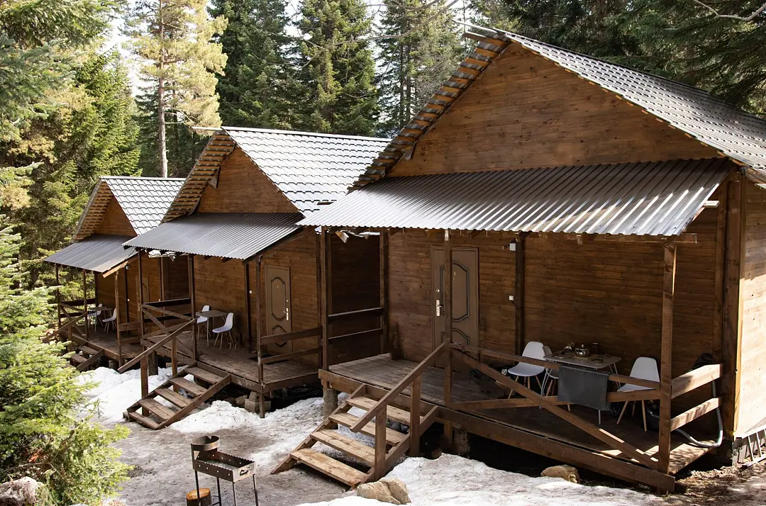 Гостям предлагается размещение в комфортабельных домиках, каждый из которых оборудован собственной зоной отдыха с мангалом — идеальным для приготовления ароматных блюд под открытым небом. Для полного расслабления после активного дня на базе есть баня с банным чаном, где можно насладиться целебным паром и живописными видами.
