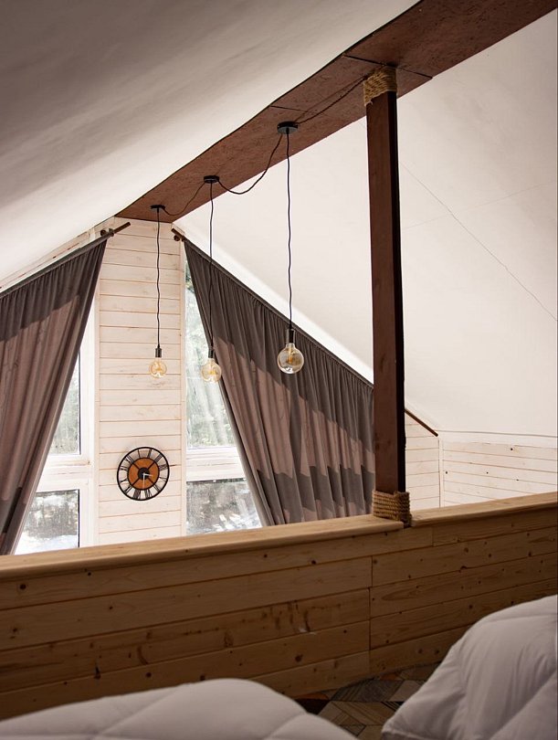 Инфраструктура: чан, зона отдыха, полотенцаБанный комплекс включает в себя банный чан и бaню-бoчку с предбанником из которого открывается вид на хвойный лес.