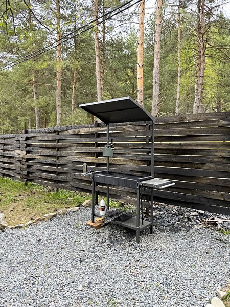 На территории базы оборудована мангальная зона, костровая чаша, детская площадка с батутом, качелями, гамак, а также парковка.