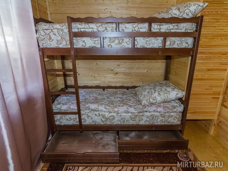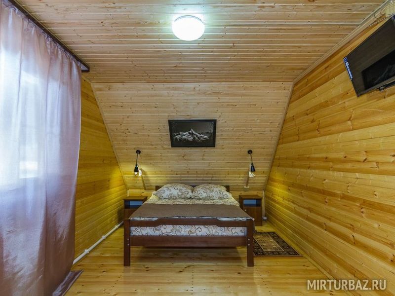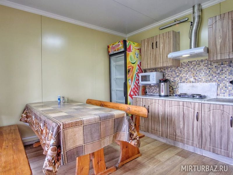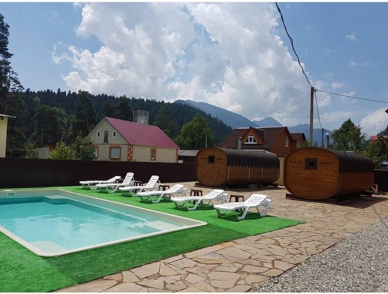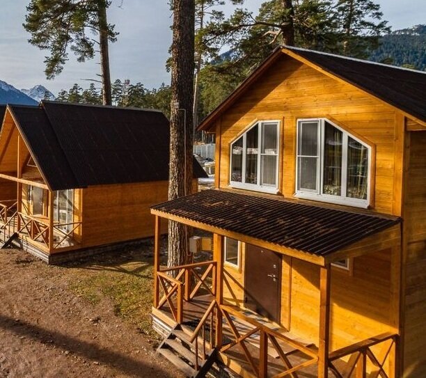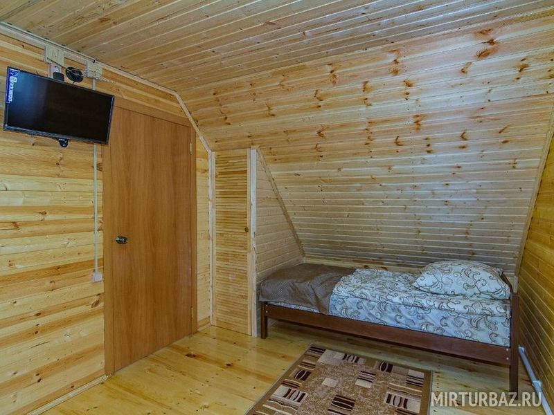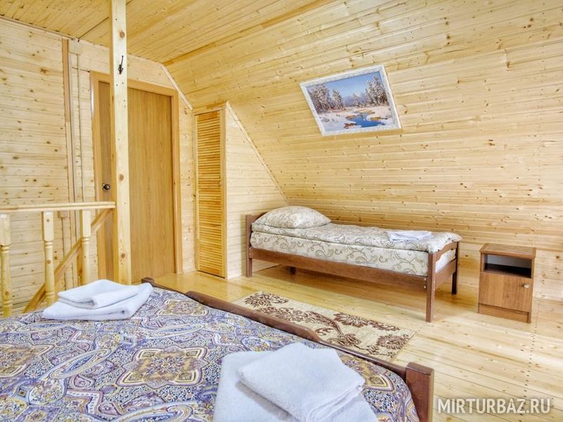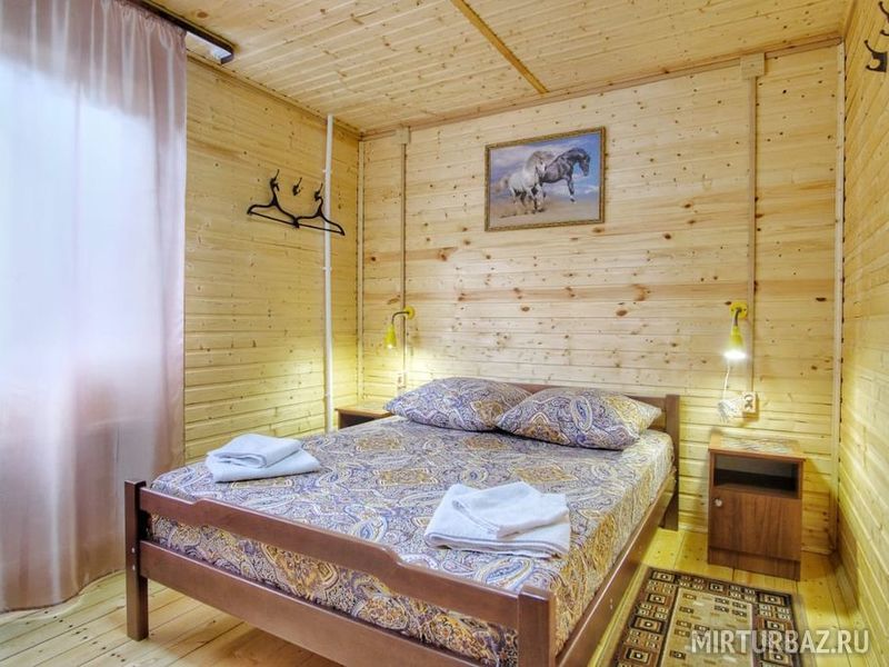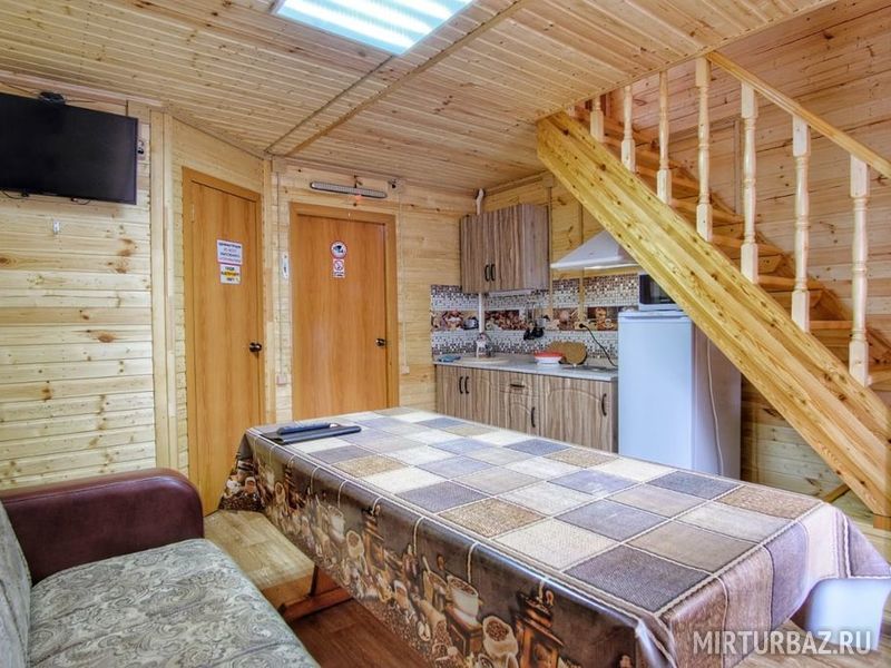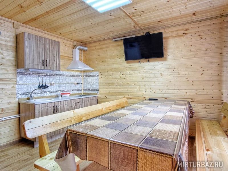 Каждый коттедж оснащен просторной кухней со всеми кухонными принадлежностями. На базе есть десять беседок с мангалами, гриль-домик и две кедровые бани на дровах, деревянная горка для детей и стоянка на 20 автомобилей.