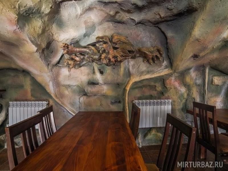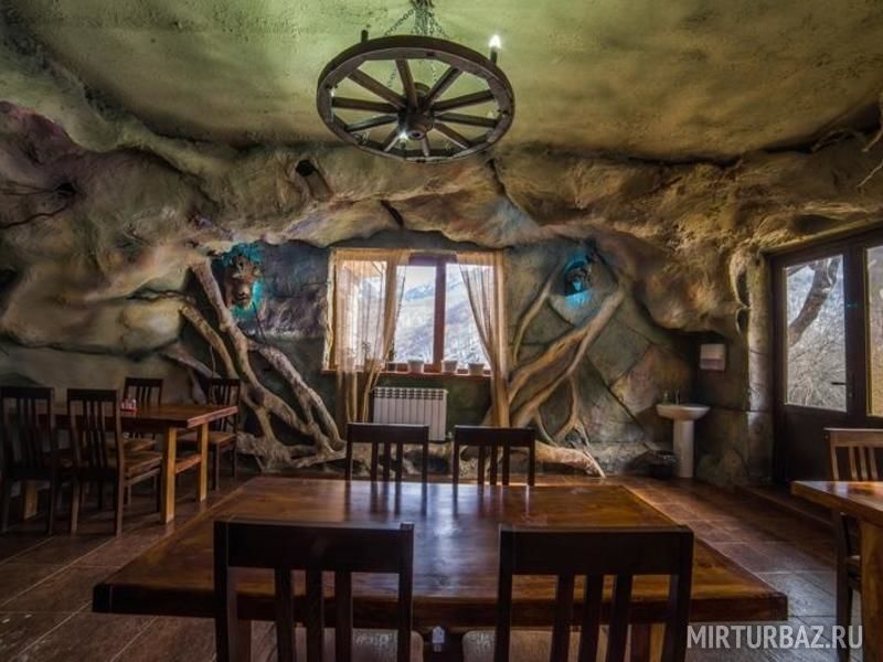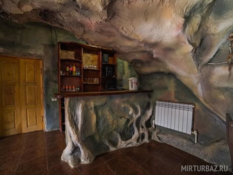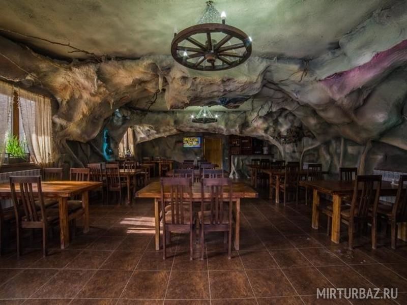База рассчитана на 80 человек и предоставляет круглогодичный отдых в комфортабельных номерах со всеми условиями. Большая часть номеров и домиков построены из цельного хвойного бруса. На базе есть кафе в стиле пещеры со своей кухней и всеми принадлежностями для приготовления пищи. На территории базы оборудовано барбекю зона с мангалами, котлами и всем необходимым для приготовления мяса. Имеются беседки разных размеров как для больших компаний, так и для небольшой семьи. Также на территории есть русская баня с бассейном.
