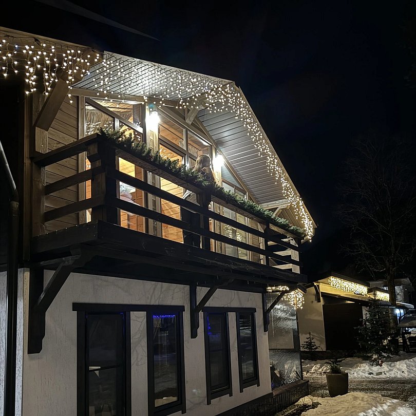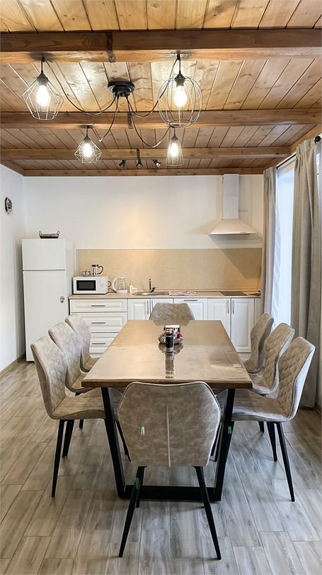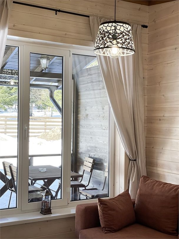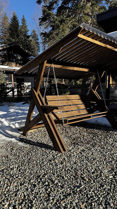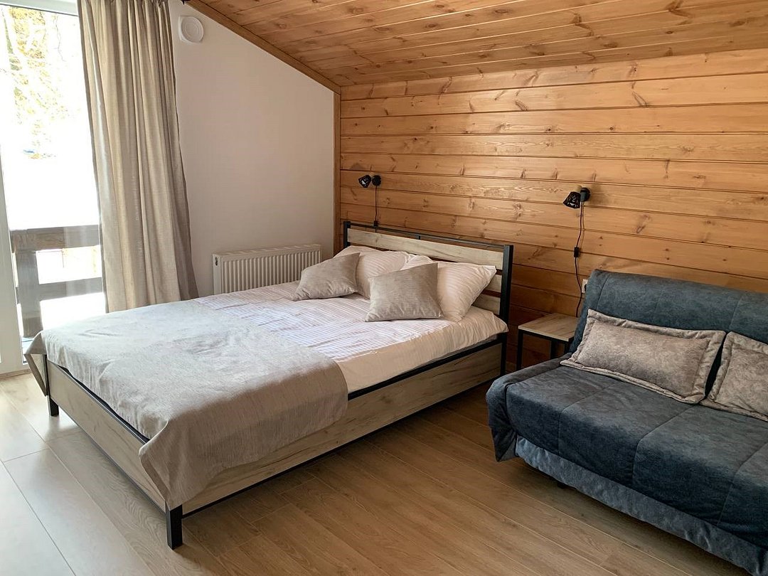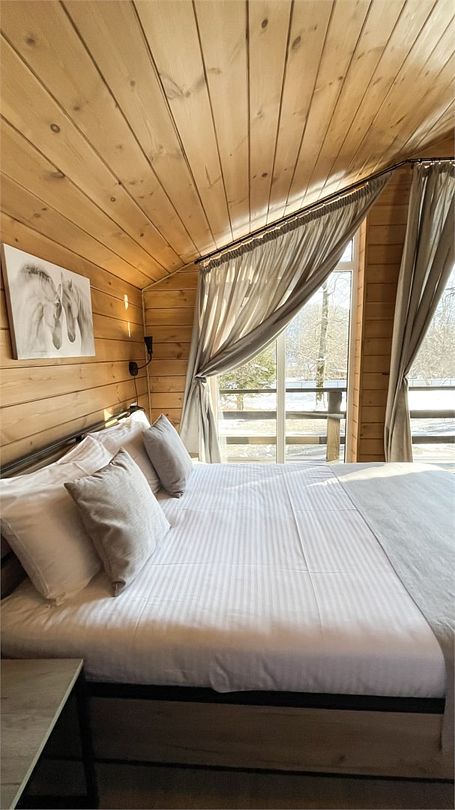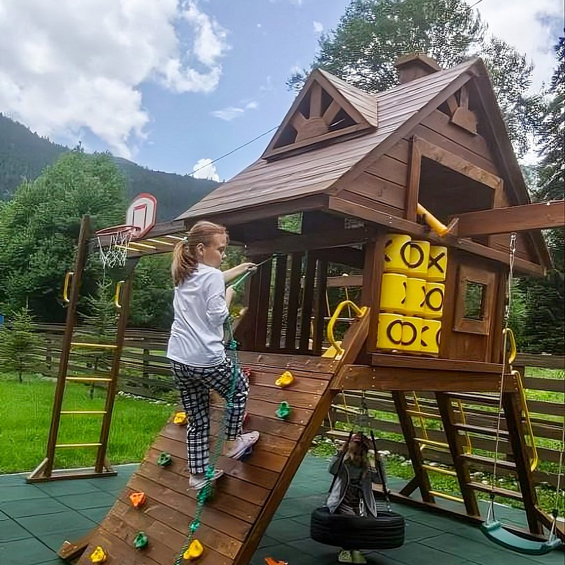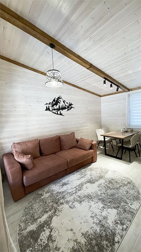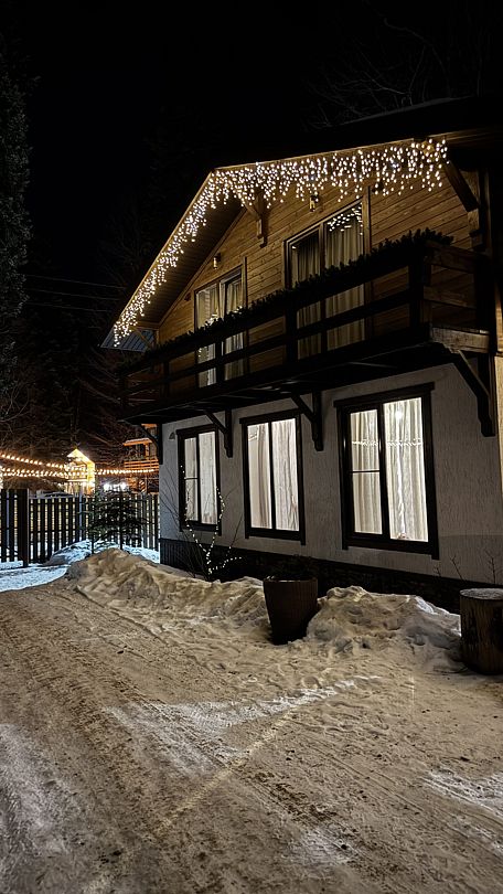 Большой и уютный домик в стиле шале, рассчитан на размещение до десяти человек, со всеми необходимыми условиями для комфортного отдыха. В доме три спальни с панорамным видом и выходом на балкон.